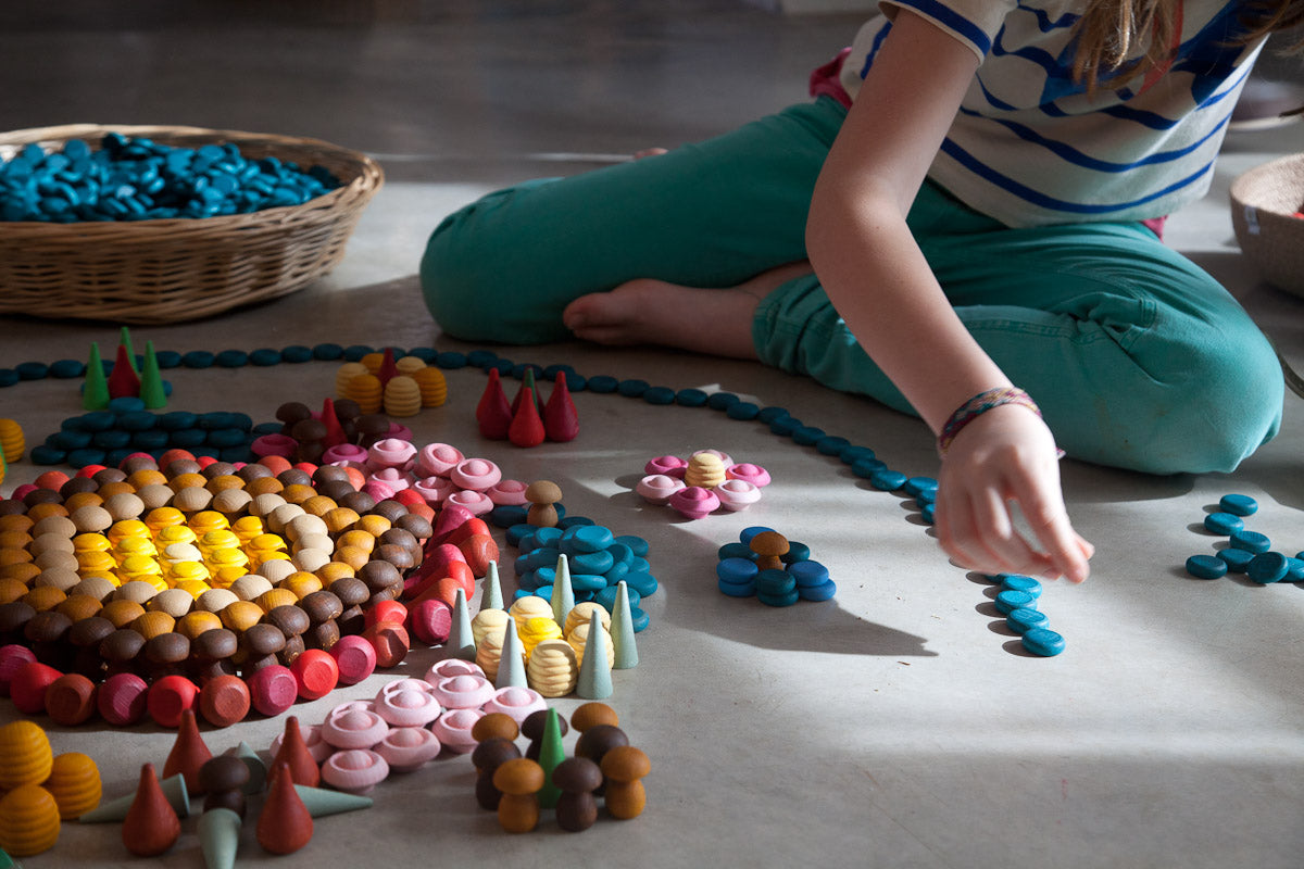 In Catalan, Grapat translates to a handful. Their toys typically come in sets, often containing a ‘grapat’ of pieces. From their classic Nins characters to colorful mandala pieces, a starry universe, and playful kitchen and nature play sets, Grapat’s line is vibrant and versatile.