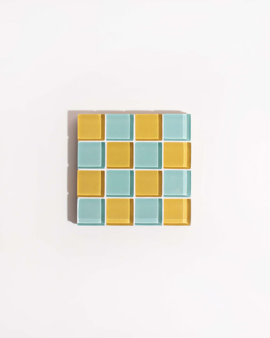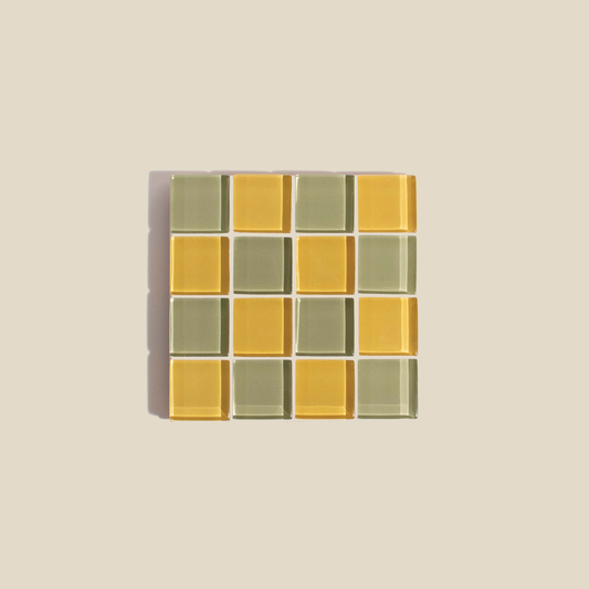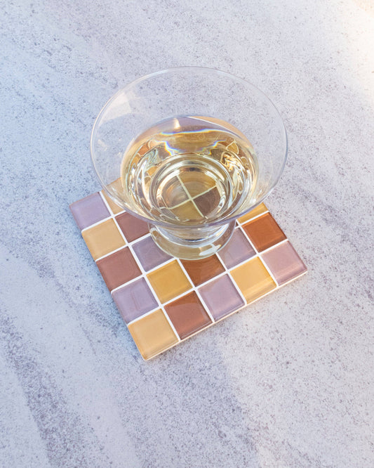 Glass Bowl Coaster (Checkered) ~ Sunrose Amber