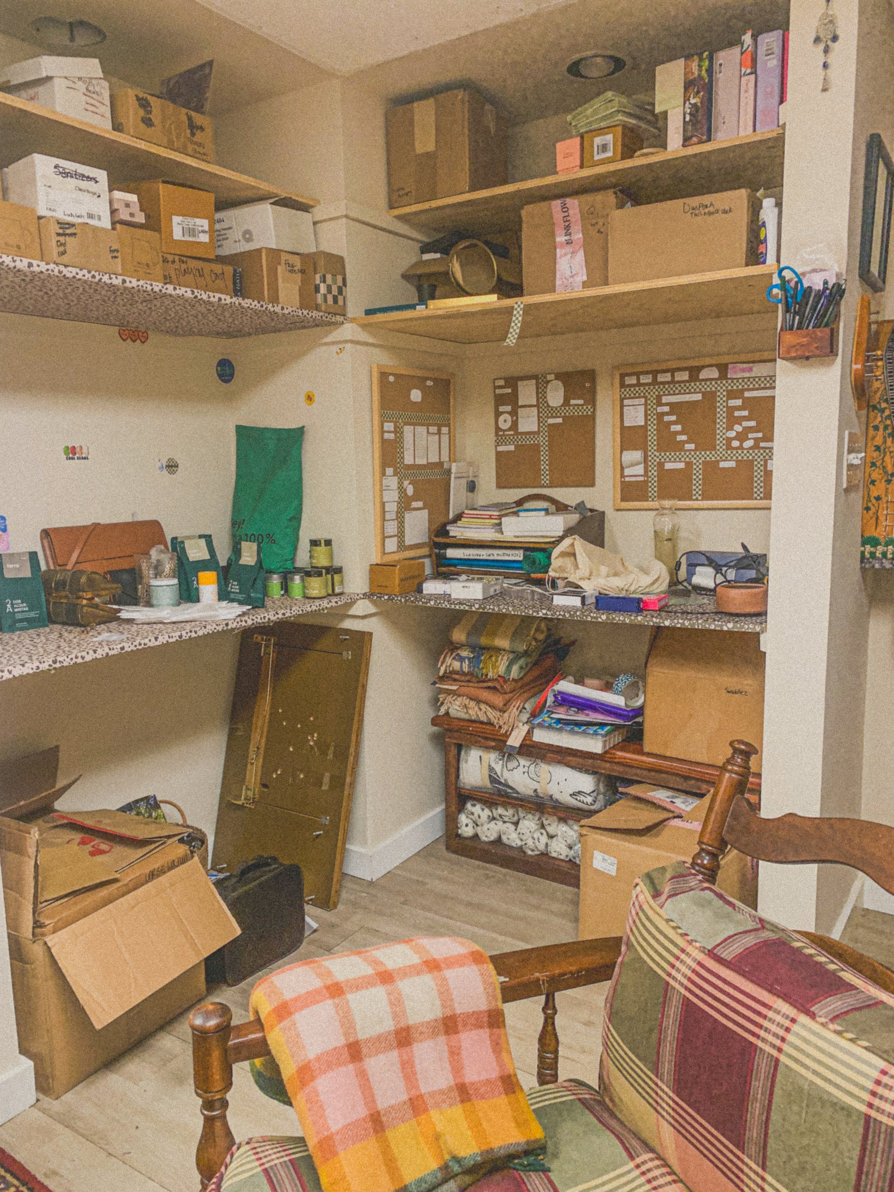 I do tend to struggle naturally with efficiency in any form which did not help the situation, but the gift wrapping/shipping station has been set up, and now a whopping 85% of our products have a proper home in the shop.