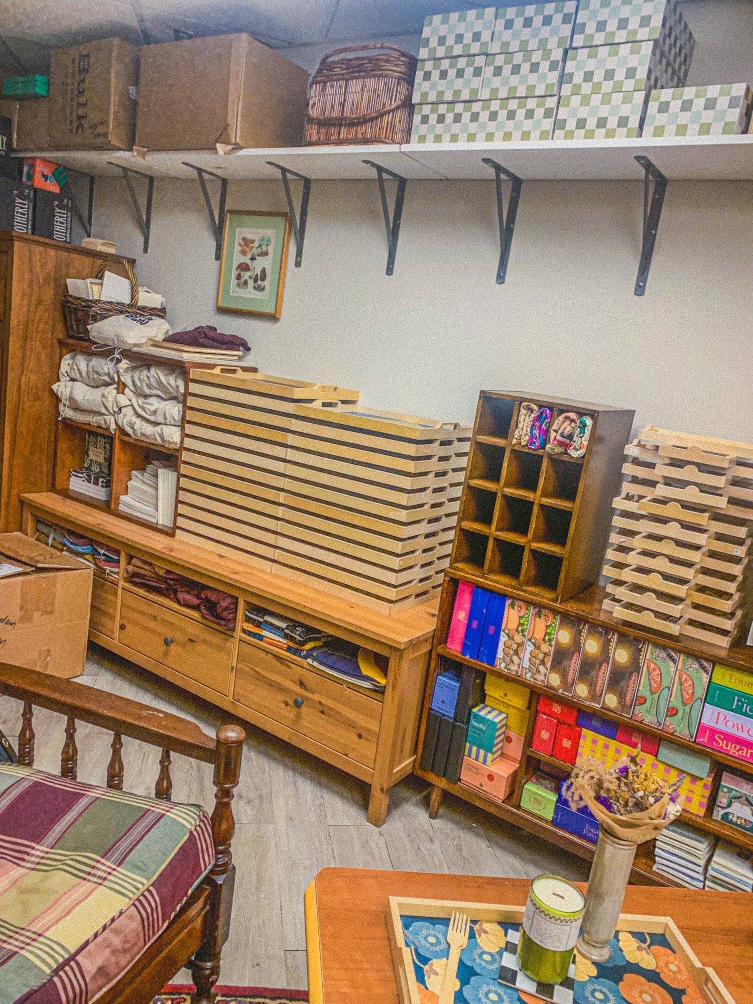I'm happy to report that most inventory no longer lives on a box. Everything has its place, the backroom is both functional and exceptionally cozy. Overall, the store is looking incredible (pictured).