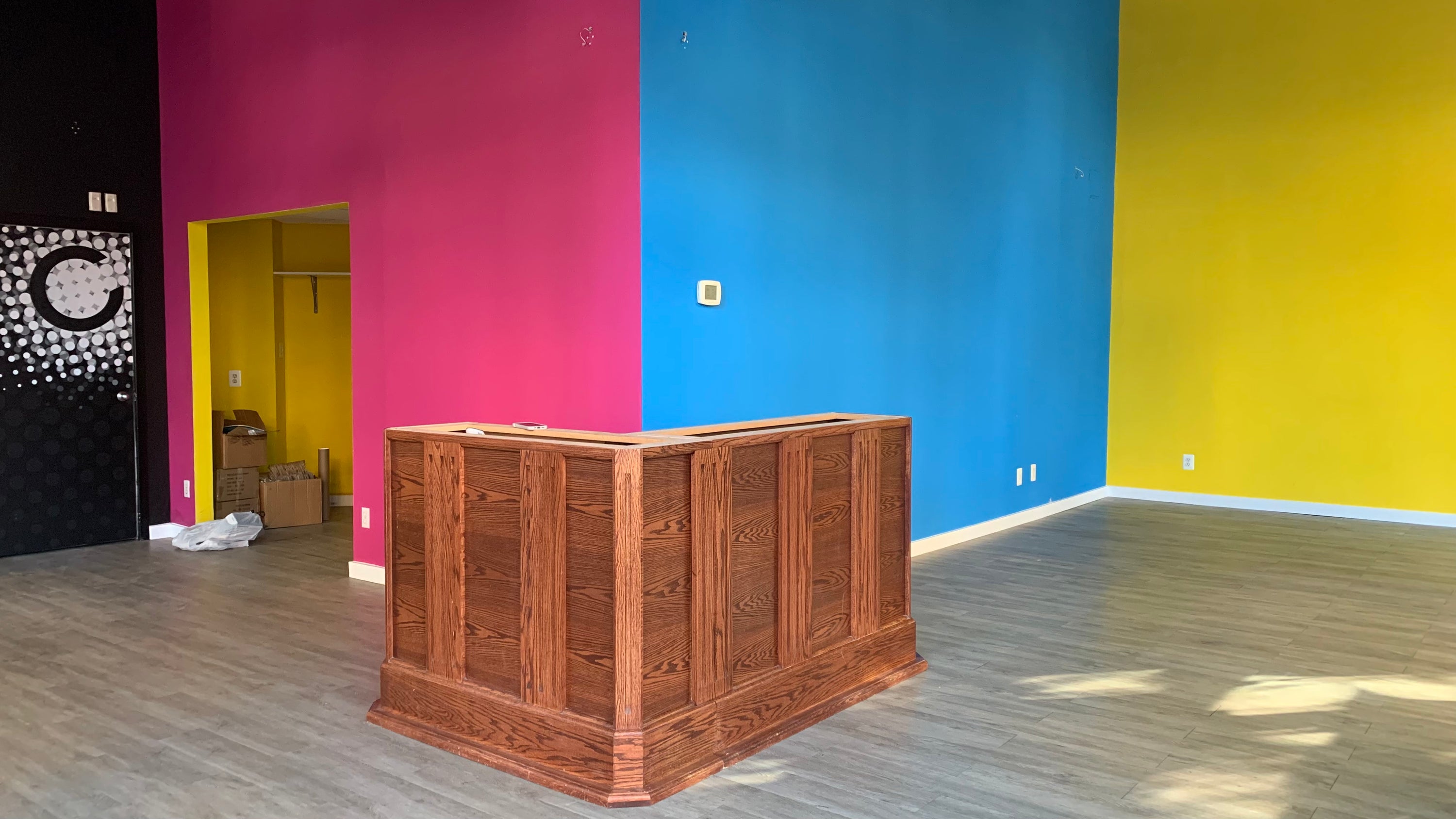 This space used to be a printing shop, so the walls were colorblocked to match the ink cartridges you'd find in a printer. A bit of an eyesore, and unfortunately not green. Had to go.