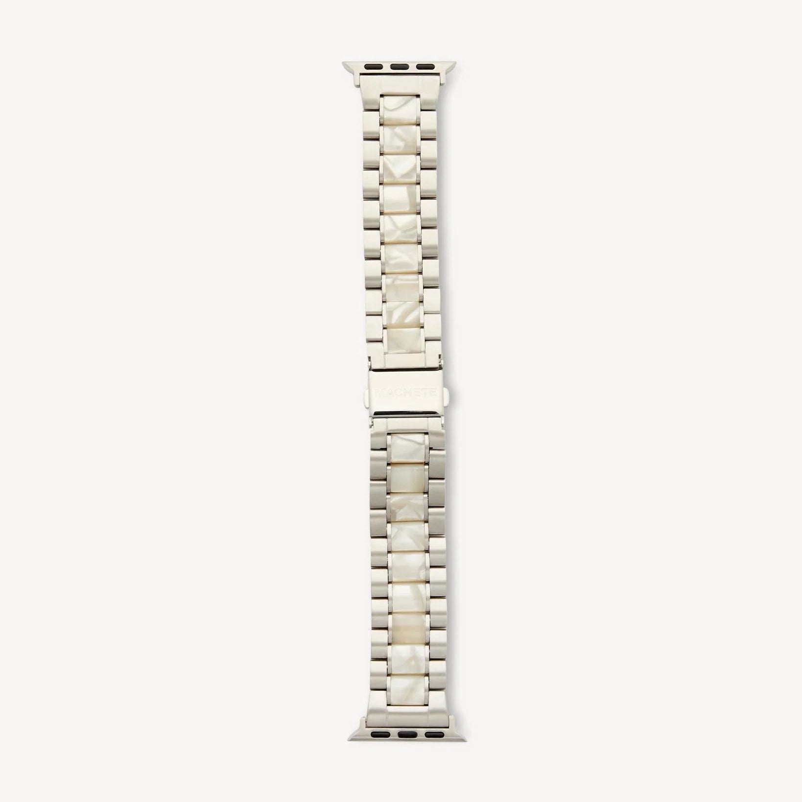 Masculine style with a MACHETE twist. The Boyfriend Apple Watch Band features a one-of-a-kind band made from stainless steel and fine Italian acetate. Includes an adaptable connector to fit any Apple watch face size.