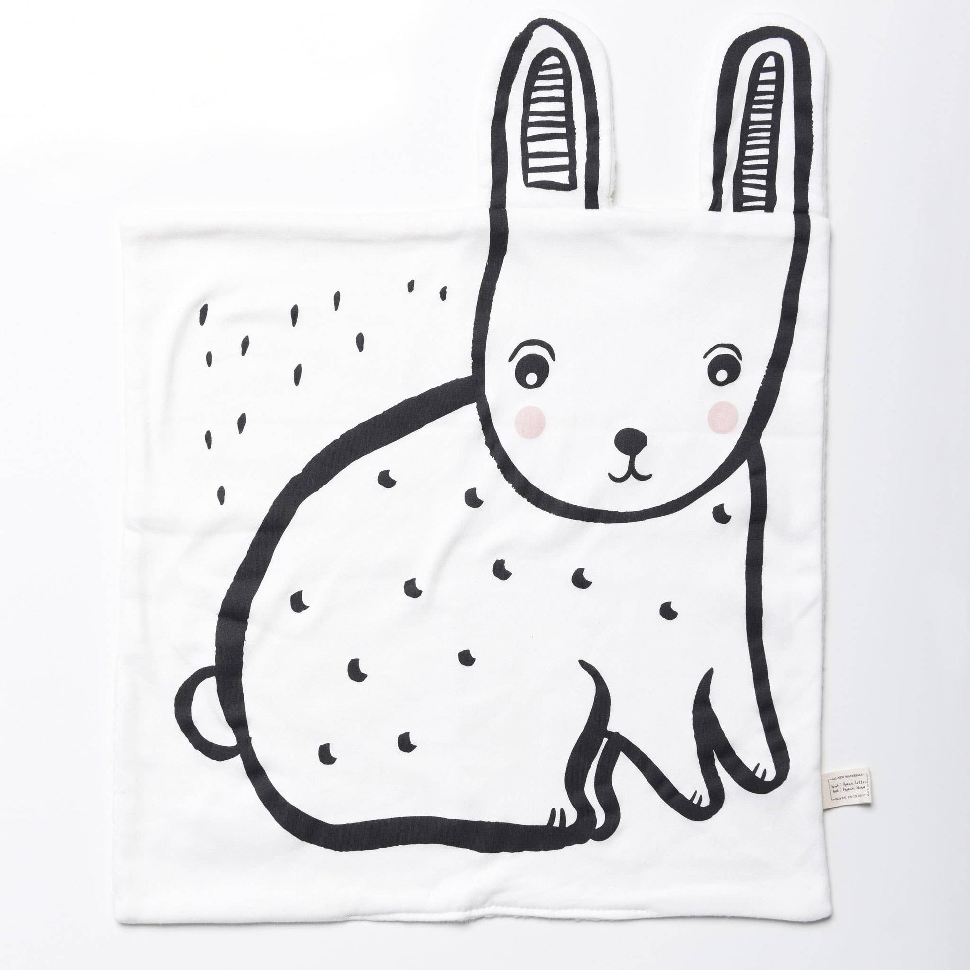 Made of the softest organic cottons, this sweet bunny baby blanket is sure to soothe and comfort while asleep or be a fun companion while on adventures! Smooth organic cotton jersey front layer, with a fluffy soft organic cotton sherpa on the reverse side. Screen printed with eco inks. The perfect Easter basket gift for babies! Measures 16 x 16 inches. Made of 100% Organic Cotton. Manufactured in India