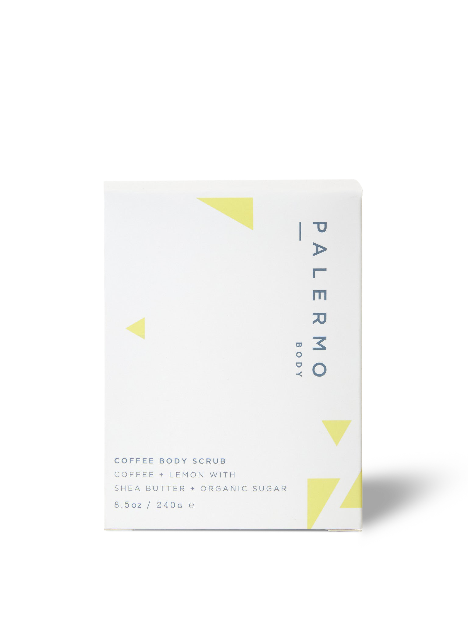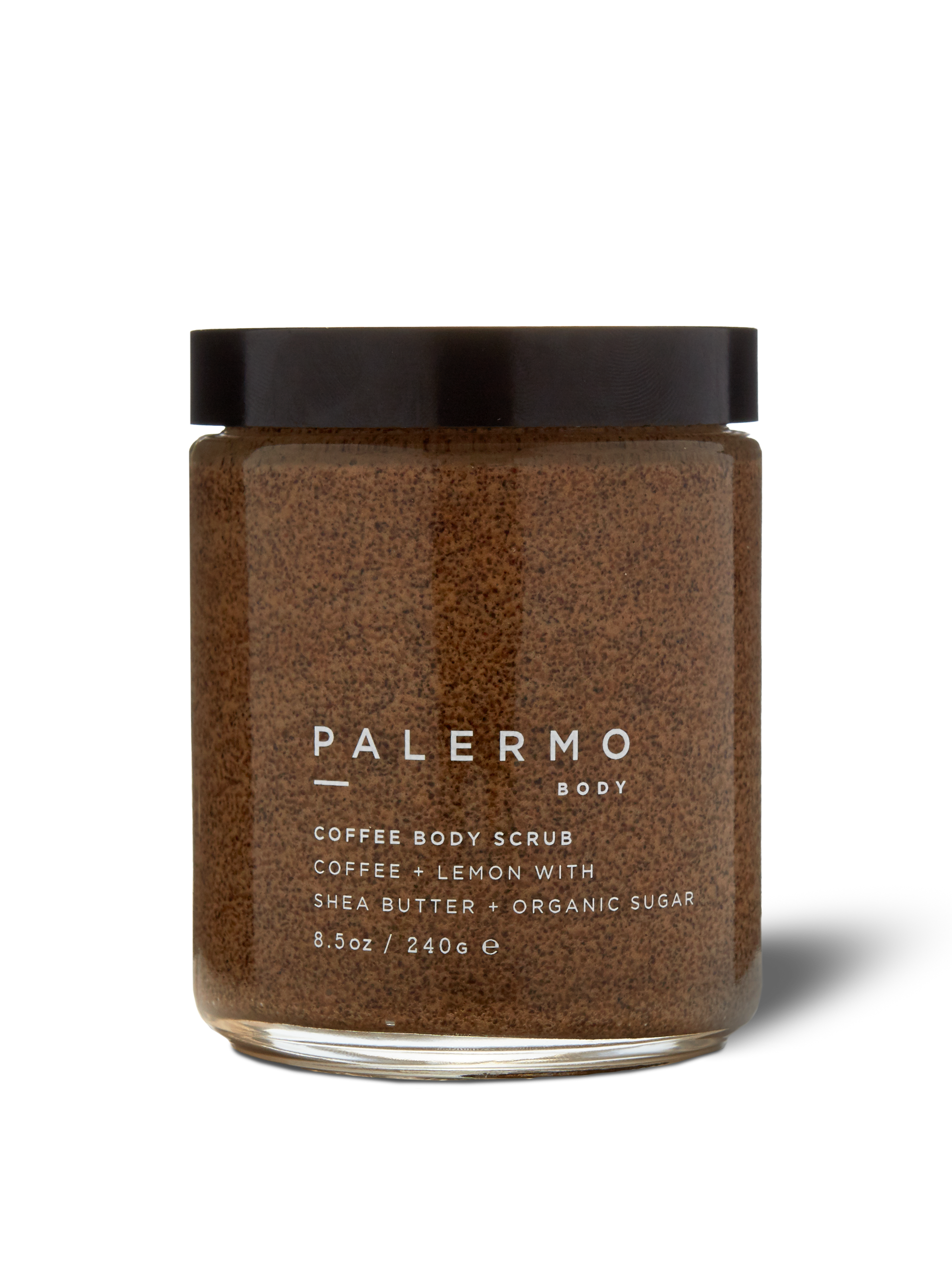 Palermo Body's distinctive Coffee Body Scrub – Coffee + Lemon is a fan-favorite exfoliator that polishes away dullness and revives tired skin with a blend of raw sugar, fair-trade organic coffee (from Brooklyn Roasting Company), and deeply moisturizing plant butters.