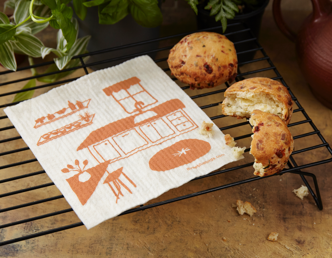 REDUCE WASTE with our Swedish Dishcloth – it’s sustainable, sturdy, and stylish. Each cloth absorbs 20x its weight, replaces 17 rolls of paper towels. ---- CONTENTS: 70% cellulose (FSC-Certified). 30% organic cotton (FairTrade & GOTS). Screen printed with water-based inks. 100% biodegradable. Designed & printed in Connecticut ---- USE: Wash dishes. Wipe up spills. Clean mirrors. Use streak-free on most surfaces. Air dries fast, doesn’t breed bacteria like a sponge. ---- REUSE: Wash up to 200 times, in top rack of dishwasher or in washing machine. Sterilize in microwave or boil briefly. ---- We include one FREE sign with your first order. Our hand made pine wooden display box holds 75 pieces and fits this sign. Box available on our product page for $29 (see image #2). ---- We donate 1% of revenue to the Earth for each dishcloth purchased, as a “1% for the Planet” business. CLEAN LIFE. GREEN PLANET. MADE WITH LOVE.