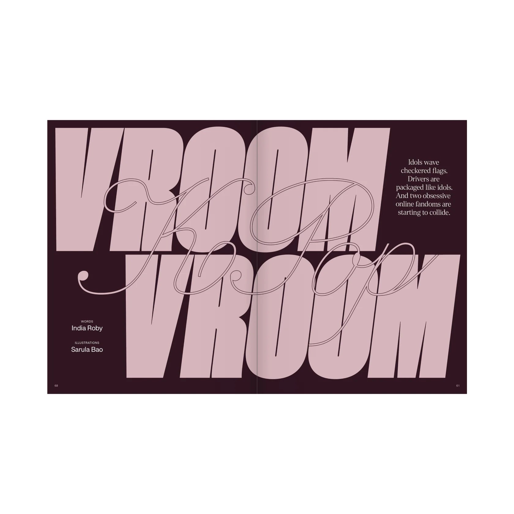 Issue 03 is a passport to every corner of the Grand Prix world. Ride along with a Nigerian adventure biker as she crosses Africa. Travel back to  1980s Detroit struggling to host a Grand Prix. Meet F1’s next Great American Hope living in Milton Keynes by way of Texas. Learn how Stephanie Travers’ historic podium moment was only the beginning of her story. And spend time with K-pop stans, Quadrant streamers, agave alchemists, and a former Ferrari driver who’s traded his car for a paintbrush.