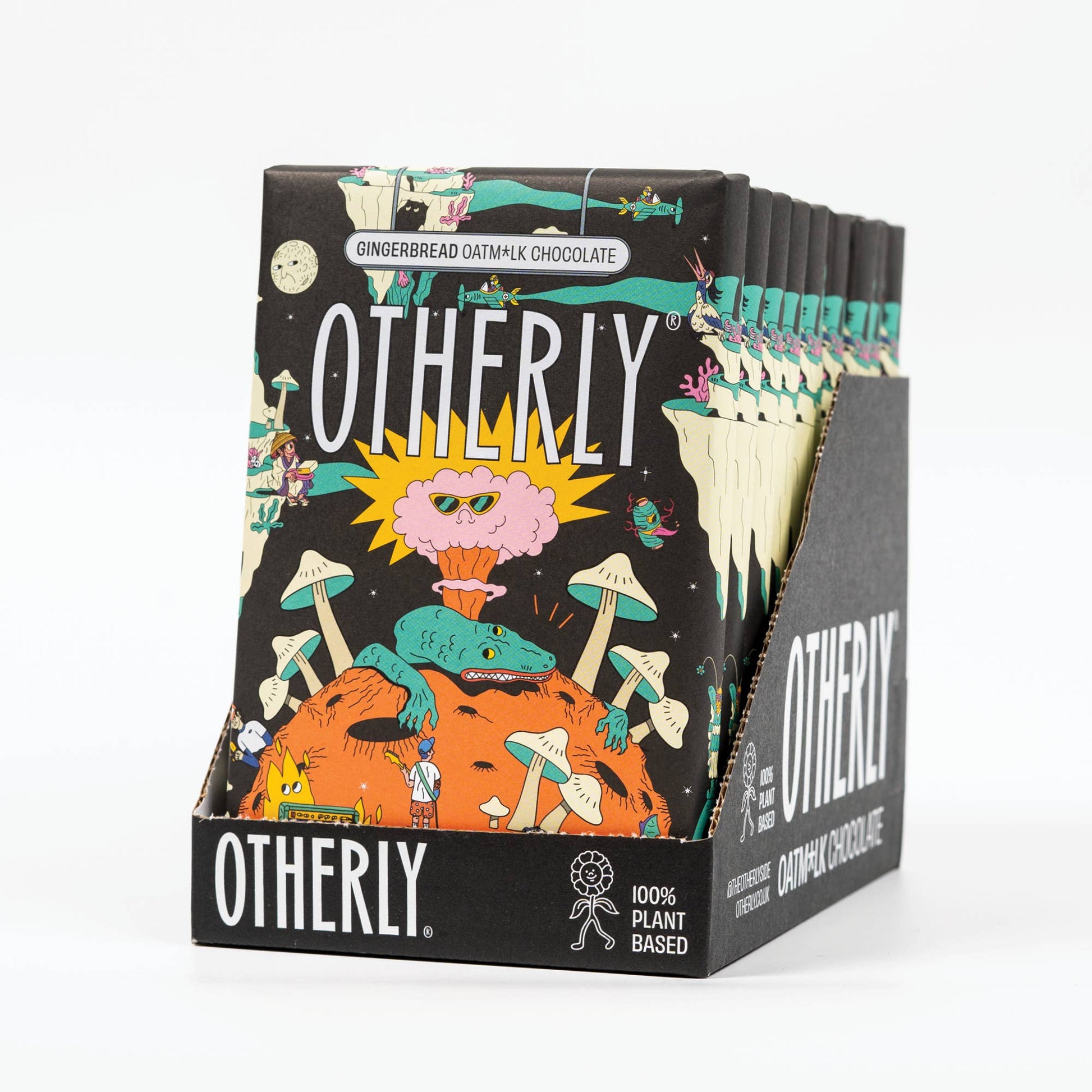 OTHERLY Gingerbread Oatm*lk is a bar of plant-based chocolate with 43% cacao content made with fine flavour cocoa beans from Colombia and oat powder, and the addition of ground ginger and cinnamon to spice-up the palate; this chocolate exposes exceptional roasted cacao notes and distinctive sweetness, that enhances delicate and authentic biscuity and cereal notes of oats, that alongside the well-defined spices, make this vegan chocolate a fiery treat for the season.