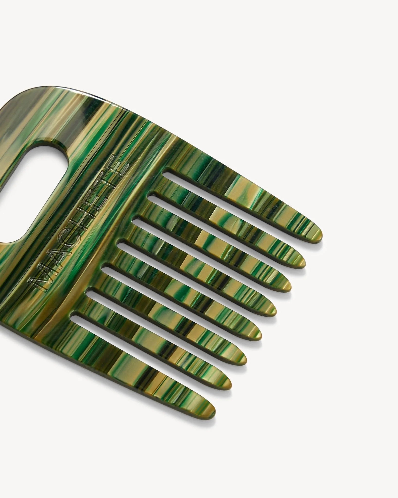 To clean your MACHETE comb, remove all hair and debris from between the teeth and soak in hot, soapy water for ten minutes. Wipe clean and gently pat dry with a towel, then air dry. Weekly cleaning recommended.