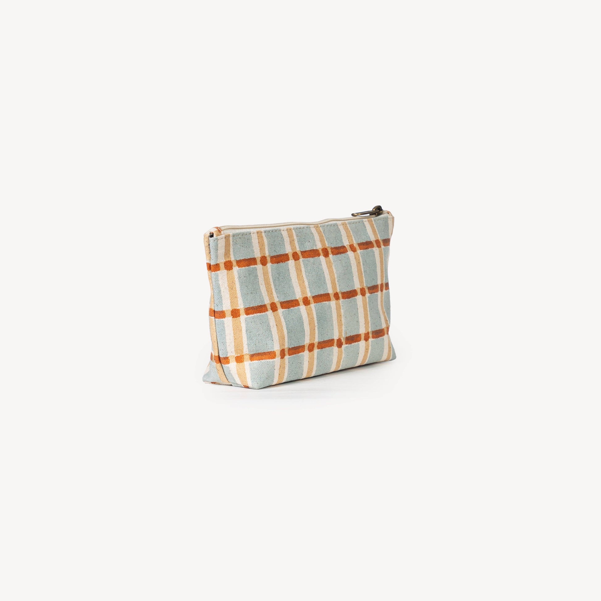 Hand block printed cotton canvas meets waterproof practicality—ideal for make up and coins, earbuds and emergency snacks, or whatever small treasures accompany your day. Tuck it into any bag for instant organization, or use it to keep organized at home. PRODUCT DETAILS: Size: W - 8.3", H - 5.5", D - X” Materials: heavy-duty cotton canvas Print: hand block printed Lining: waterproof lining Care: spot clean only Fair Trade and Social Enterprise Certified. Handcrafted from our studio in the Himalayas where we offer holistic, living wage work to those who have experienced barriers to work. MSRP: $24.00