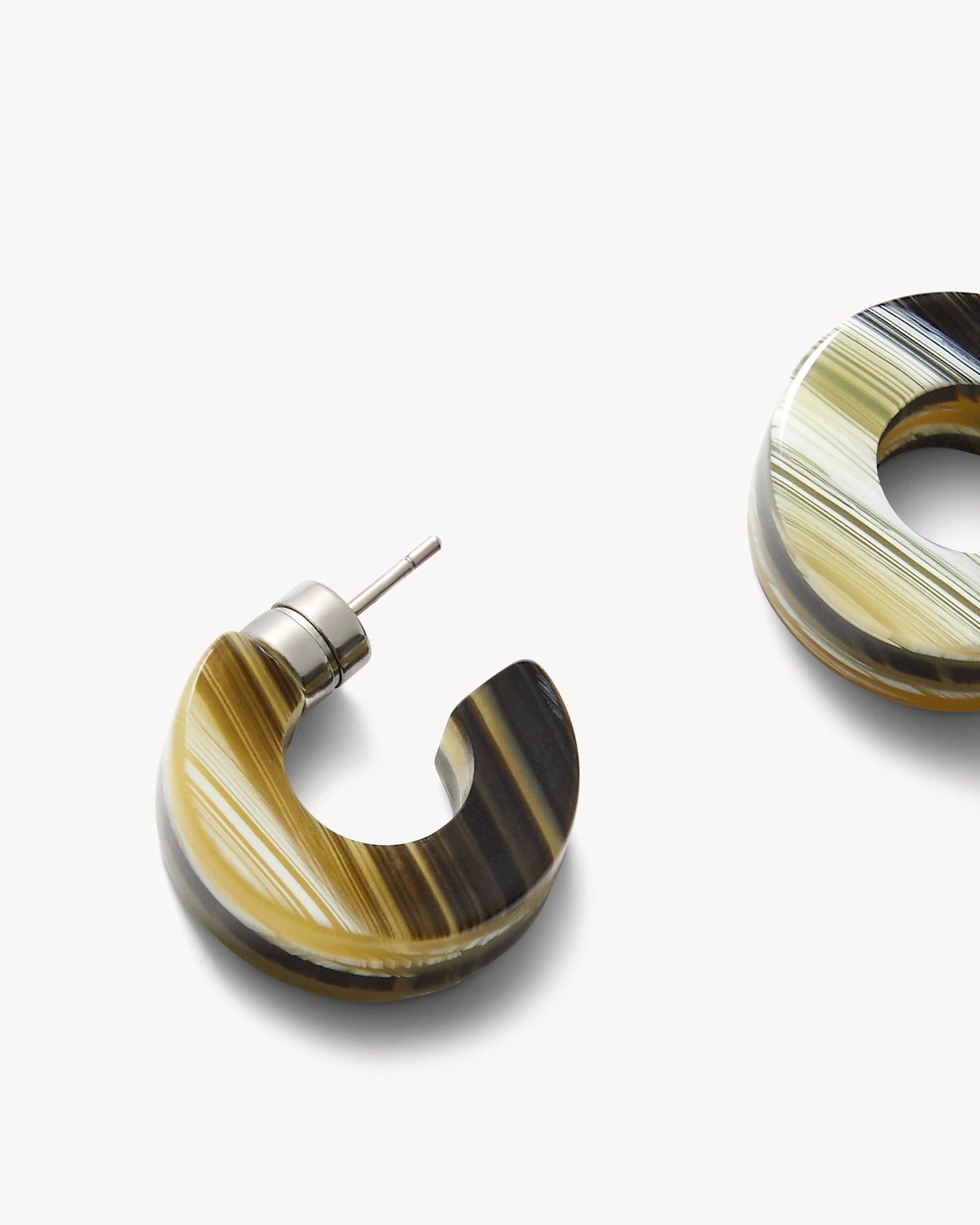 Compact, chunky hoops handmade from our Italian bio-acetate with engraved barrel backings.