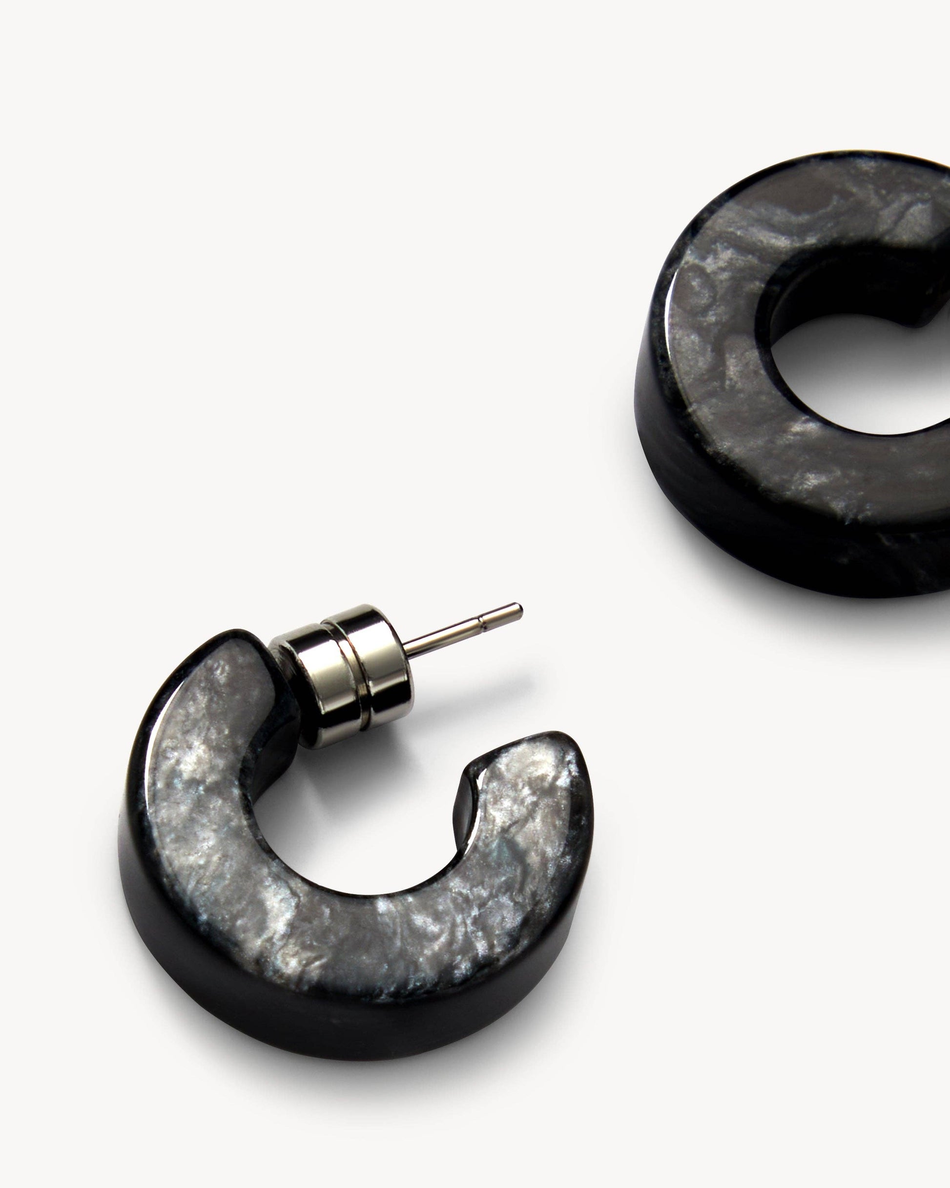 Compact, chunky hoops handmade from our Italian bio-acetate with engraved barrel backings.