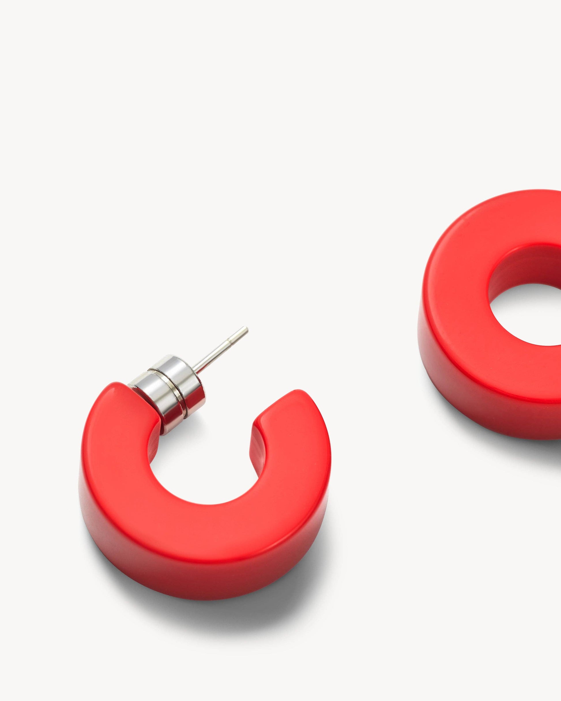 Compact, chunky hoops handmade from our Italian bio-acetate with engraved barrel backings.