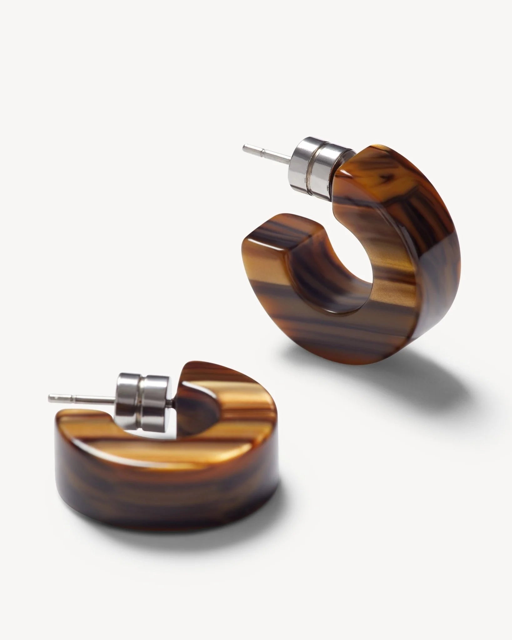 Compact, chunky hoops handmade from our Italian bio-acetate with engraved barrel backings.