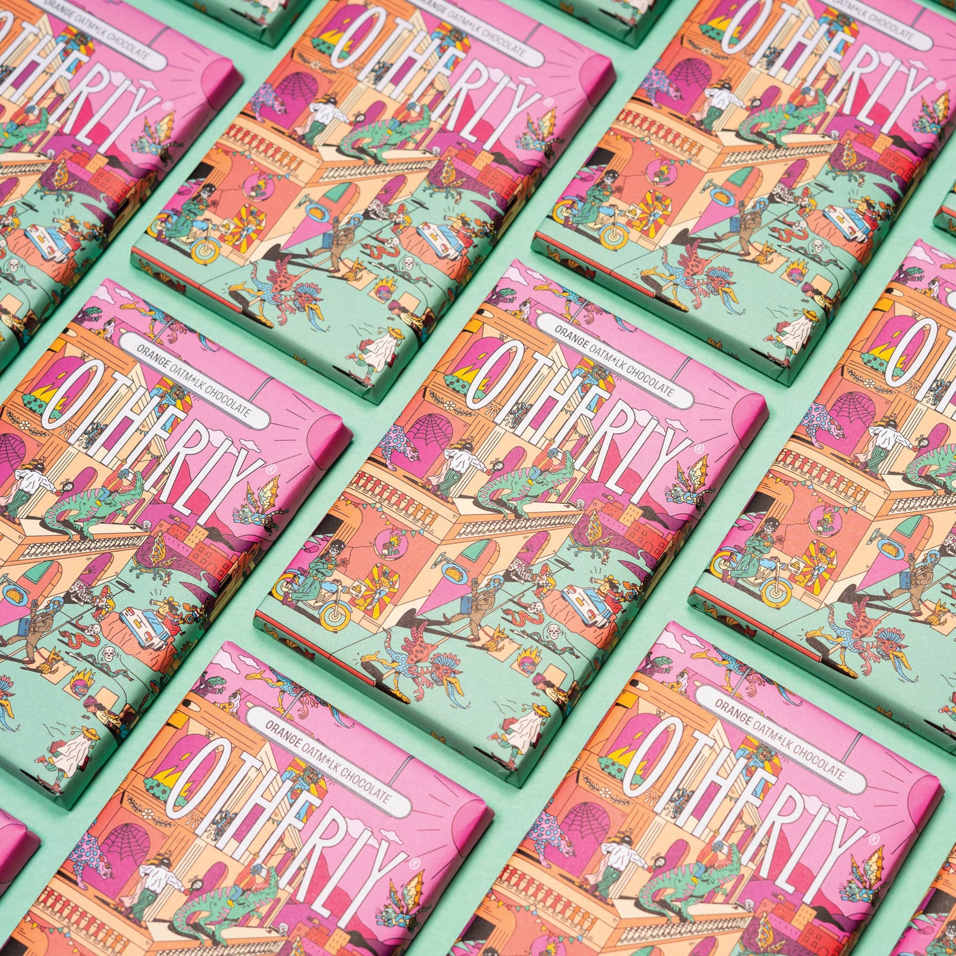Explore the Otherly side ~ ethical, single-origin Columbian cacao paired with oat milk and classic flavors make for a chocolate bar that's truly otherworldy.