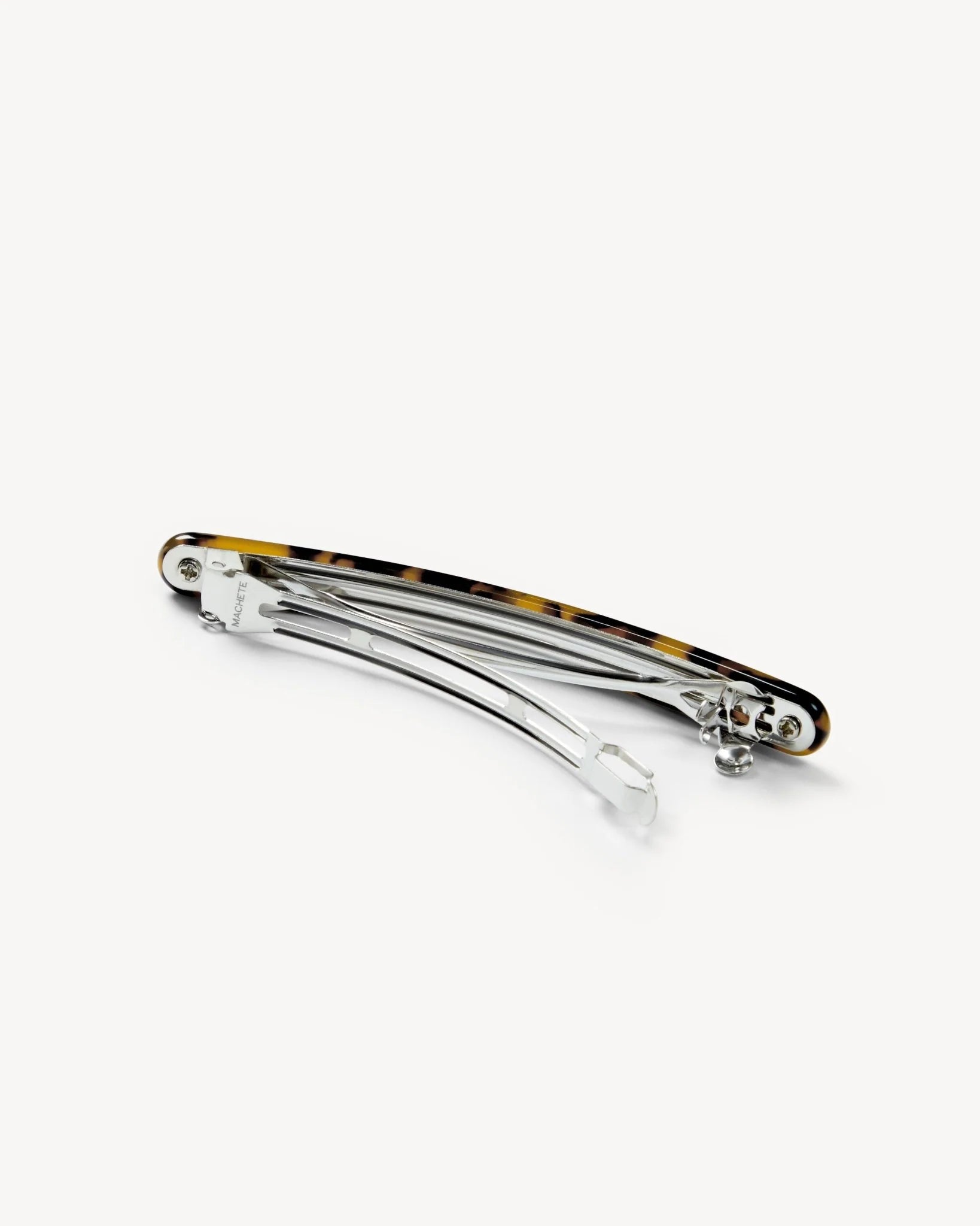 An elongated version of our classic Paris barrette. Handmade in France from fine Italian acetate with a reinforced spring clasp. Securely holds small to medium amounts of hair of all textures.